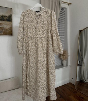 [This review was collected as part of a promotion.] Love this dress! Light, comfy, and breathable fabric with a delicate floral print. The fit is relaxed yet stylish, and the tie detail adds a sweet touch. Perfect for everyday wear!