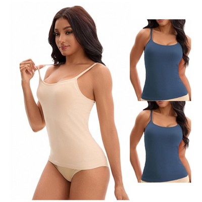 The women's camisole features soft fabric in various colors for the whole family. These soft modal/spandex camis, with built in shelf bra are great for layering or lounging around on a warm day. Item Features: 1) Spaghetti straps design,shoulder straps are adjustable,allows you to adjust the length you like. 2) Flat seams move smoothly against your skin. 3) Soft & comfortable modal fabric,spandex with good retention could keep the shape after wearing many times. 4) Simple and basic color easily mixing-and-matching other clothes. 5) Modal tank top with bra provide double secure. 6) Perfect for daily wear, home, casual, workout, yoga, and so on. 7) The undershirts are matching with your jeans, leggings, skirt, and so on.