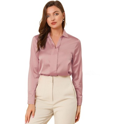 INSPIRE CHIC Women's Button Front Drawstring Hem Point Collar Mesh Sheer Long Sleeve Shirt X-Large Light Pink