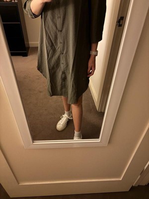 A: The shirt dress features a regular fit, designed for comfort and ease of movement.