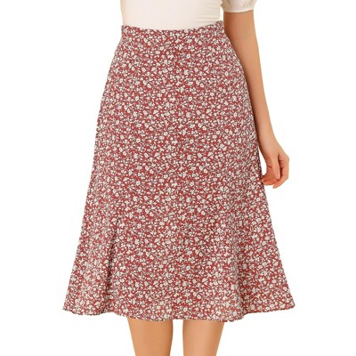 INSPIRE CHIC Women's Casual Elastic Waist Peasant A-Line Midi Skirts with Pockets Large Coffee