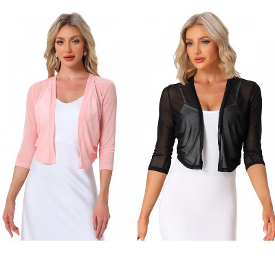 INSPIRE CHIC Women's Casual Short Sleeve Mesh Sheer Open Front Cropped Cardigan Shrug 2 Packs - 1 of 4