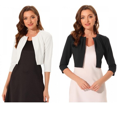 INSPIRE CHIC Women's Casual Short Sleeve Mesh Sheer Open Front Cropped Cardigan Shrug 2 Packs White/Black Small