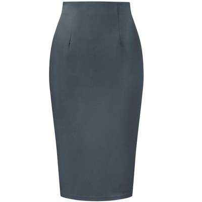 • Midi Length Skirt, Elastic Back, A-Line, Fly Button, and Zipper