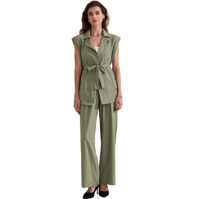 INSPIRE CHIC Women's Chiffon Ruffles V Neck Top Wide Legs Wedding Guest Pant Suit Sets 2 Pcs - 1 of 4