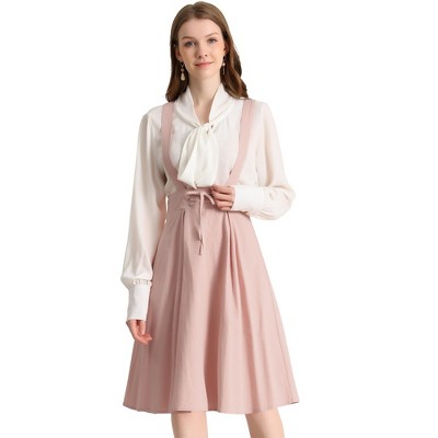 INSPIRE CHIC Women's Classic Button Decor Slim Fit Sleeveless Tie Waist Pinafore Overall Dress - 1 of 4