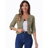 INSPIRE CHIC Women's Collarless Pockets 3/4 Sleeve Crop Denim Jackets - 2 of 4INSPIRE CHIC Women's Collarless Pockets 3/4 Sleeve Crop Denim Jackets - 3 of 4INSPIRE CHIC Women's Collarless Pockets 3/4 Sleeve Crop Denim Jackets - 4 of 4