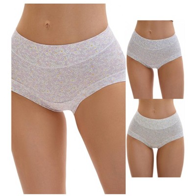 INSPIRE CHIC Women's Cotton Allover Floral Printed Underwear Mid Waisted Full Coverage Tummy Control Briefs 2 Packs 1 Light Purple+1 Light Green
