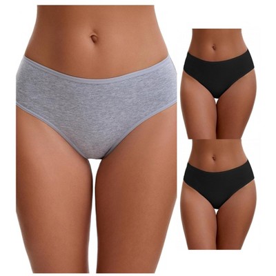 INSPIRE CHIC Women's Cotton High Waist Briefs Breathable Underwear, Available in Plus Size 3 Packs 1 Gray and 2 Black Small