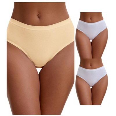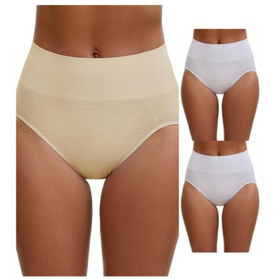 INSPIRE CHIC Women's Cotton High Waist Briefs Breathable Underwear, Available in Plus Size 3 Packs 2 White and 1 Beige Small