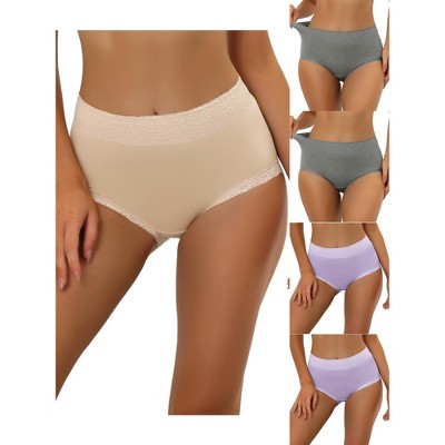 INSPIRE CHIC Women's Cotton Solid High-Rise Lace Trim Tummy Control Full Coverage Briefs 6 Packs 3 Gray 3 Beige Large
