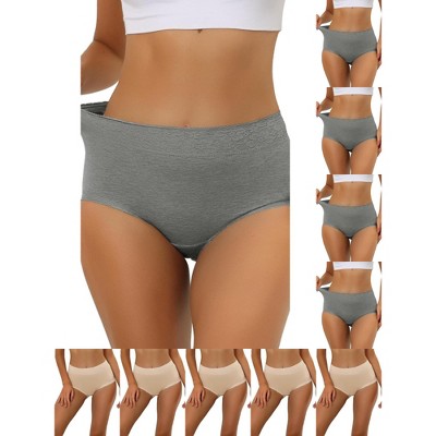 INSPIRE CHIC Women's Cotton Solid High-Rise Lace Trim Tummy Control Full Coverage Briefs 6 Packs
