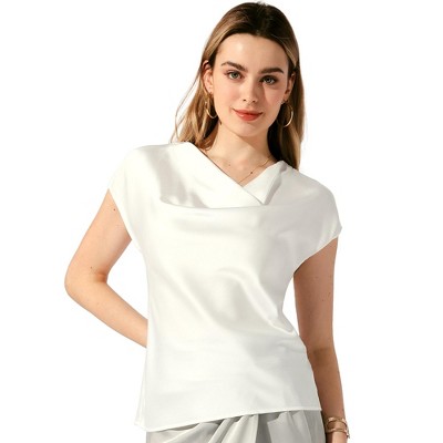Elevate your closet with this versatile cowl neck top featuring short sleeves. A must-have choice for all seasons, offering effortless style and comfort year-round. The cowl neck detail adds an elegant touch to the top while providing a flattering silhouette. The stretchy fabric ensures a comfortable and stylish fit that complements your body shape. This stretchy blouse strikes the perfect balance between casual and chic, making it ideal for a variety of occasions. Dress it down with jeans for a laid-back look or pair it with trousers for a more polished outfit.