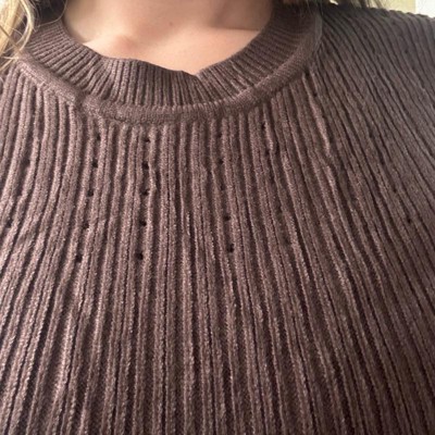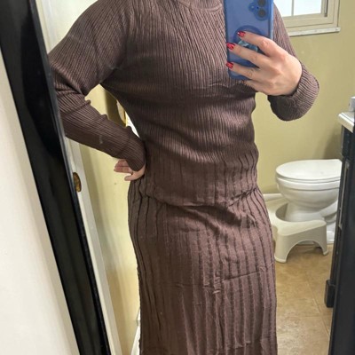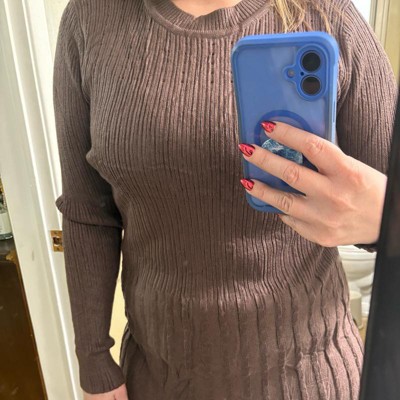 INSPIRE CHIC Women's Crewneck Knit Long Sleeve Midi Ribbed A-Line Sweater Dress Coffee Medium
