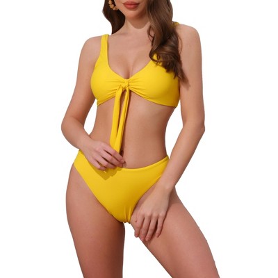 INSPIRE CHIC Women's Cutout Racerback Ribbed Bikini Sets, Scoop Neck Top Triangle Bottom Swimwear Bathing Suits 1 Set Yellow Large