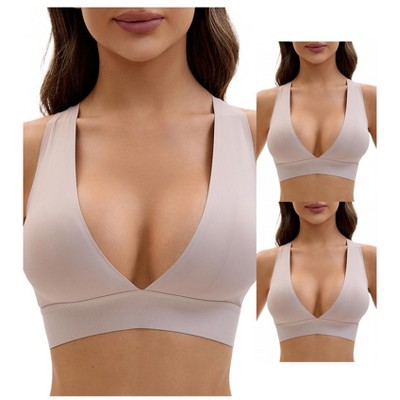 INSPIRE CHIC Women's Deep V Bralette Wirefree T-Shirt Seamless Comfortable Plunge Bras 2 Packs
