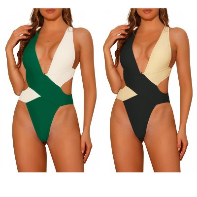 INSPIRE CHIC Women's Deep V Neck Criss Cross Tummy Control High Cut Swimwear Monokini Bikini Suits 2 Sets - 1 of 4