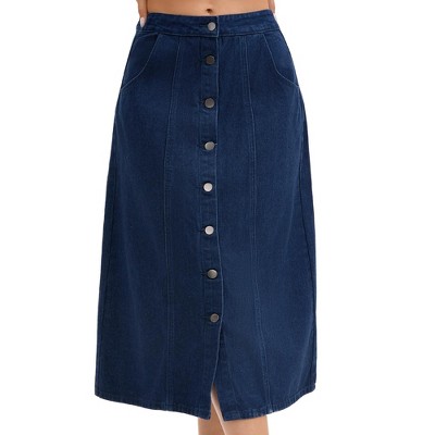 Women's Denim Midi Skirt Features: Button Down Front, Slit Pockets, High Waisted A-Line Midi Jean Skirt, Pencil Skirt, Long Skirt, Regular Fit. Multiple Colors to Choose From. This Denim Skirt is designed to elevate your style with its vintage look and regular fit. It features a classic button-down front, midi length, and pockets, making it a versatile and timeless addition to your wardrobe. Pair this denim skirt with a tank top or a denim jacket to create a fashionable yet practical outfit.