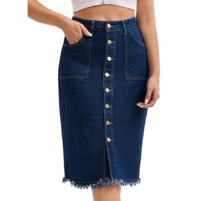INSPIRE CHIC Women's Denim Button Down Front Slit with Pockets High Waist Pencil Midi Skirts