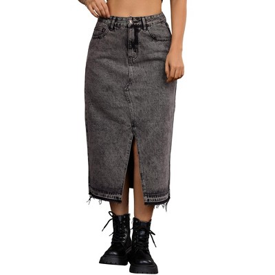 INSPIRE CHIC Women's Denim Casual Side Split A Line Stretchy Pencil High Waist Midi Skirts - 1 of 4