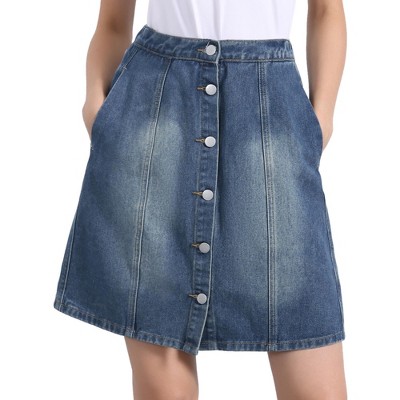 INSPIRE CHIC Women's Denim High Waisted Summer Washed A-Line Midi Jean Skirts - 1 of 4