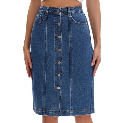 INSPIRE CHIC Women's Denim Pockets High Waisted Front Slit Stretch Sheath Midi Jean Skirts