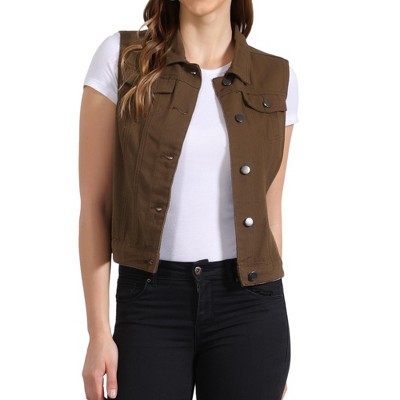 INSPIRE CHIC Women's Denim Sleeveless V Neck Button Down Casual Waistcoat Vest X-Small Khaki