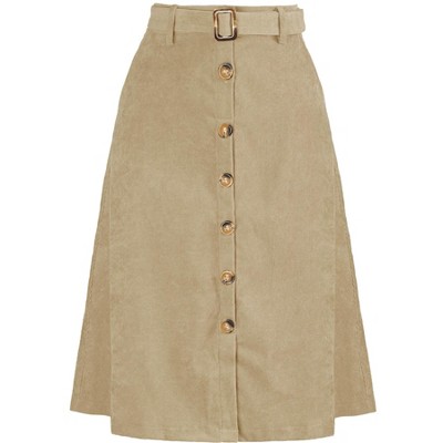 This women's casual skirt features an elastic waist and a-line hem for a chic and comfortable look. Made from a soft fabric, it is perfect for staying cozy on chilly days. The midi length and button decor add a modern touch to the classic design. Suitable for various occasions such as casual wear, beach outings, weddings, and themed parties. Pair it with a tank top, cami, tee top, or blouse for a complete look.