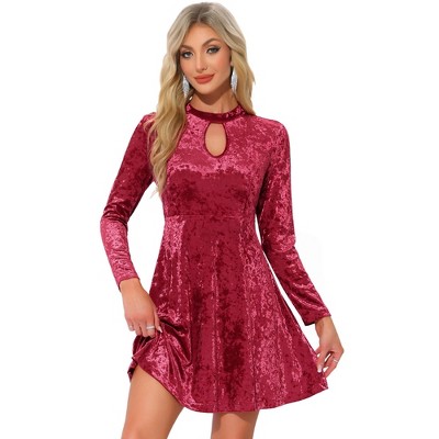 INSPIRE CHIC Women's Elegant Mesh Sheer Long Sleeve Mermaid Wedding Guest Dress Rose Red Small