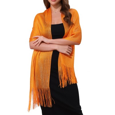 INSPIRE CHIC Women's Fashion 100% Polyester Pashmina Shawls 1 Pc 190x45cm/74.8x17.7"(LxW) Orange(Gold)