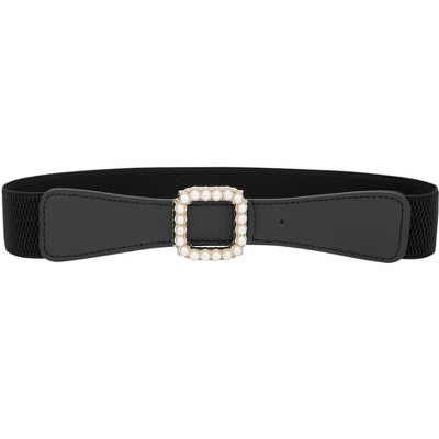INSPIRE CHIC Women's Fashion Rhinestone Wide Elastic Thick Stretch Belts 1 Pc One Size Black