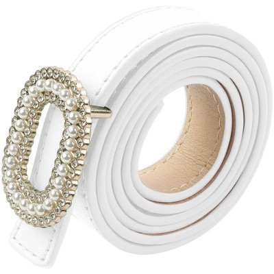 INSPIRE CHIC Women's Faux Leather Belt Fashion Ladies Belt with Rhinestone Buckle for Jeans Pants White 103x2.8cm/40.6x1.1"