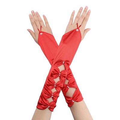 INSPIRE CHIC Women's Faux Leather Fingerless Long Sleeve Gloves 1 Pair One Size Red