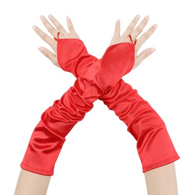 These women's fingerless elbow length gloves feature a hollow-out design with charming bow beads, combining elegance with modern style. The fingerless style offers freedom of movement, ideal for holding glasses. A finger loop ensures a secure fit for comfortable wear. Made from 100% polyester, these gloves are slim fit and slightly stretchy. Available in multiple colors, they can be paired with various outfits for evening events, parties, and weddings. Note that actual fabric color may vary due to device brightness and production batches. Allow for slight measurement deviations due to manual measuring.