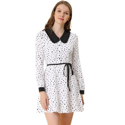 INSPIRE CHIC Women's Fit and Flare Peter Pan Collar Floral Dress White Medium