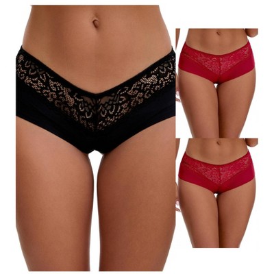 INSPIRE CHIC Women's Floral Lace Breathable Comfortable Mid Rise Underwear Briefs 3 Packs 1 Black 1 Wine Red 1 Beige Large