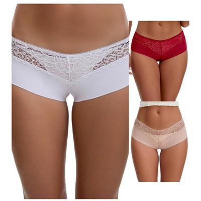 INSPIRE CHIC Women's Floral Lace Breathable Comfortable Mid Rise Underwear Briefs 3 Packs 3 Beige Large