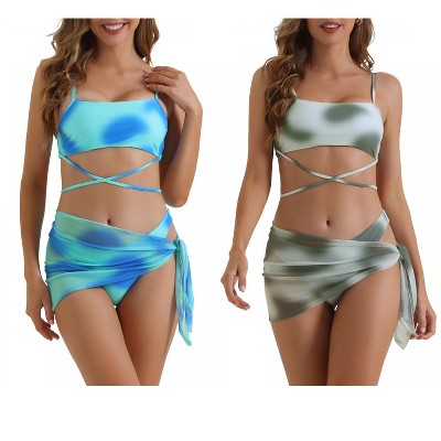 INSPIRE CHIC Women's Floral Print Bandeau Tie Back Swimwear Triangle Bottoms Bathing Bikini Suits 3 Pieces 2 Sets - 1 of 4