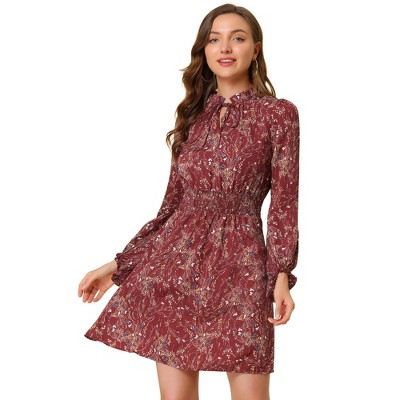 INSPIRE CHIC Women's Floral Print Long Sleeve Back Tie Flowy Midi Boho Dress Purple Large
