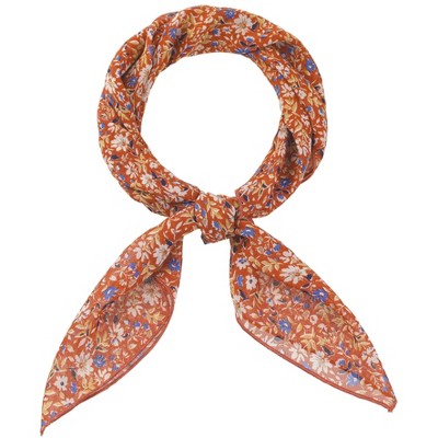INSPIRE CHIC Women's Floral Rhinestone Retro Scarf, 27.6'' Square Cotton Print Pattern Neckerchief Head Wrap for Party Gift 1 Pc One Size Khaki