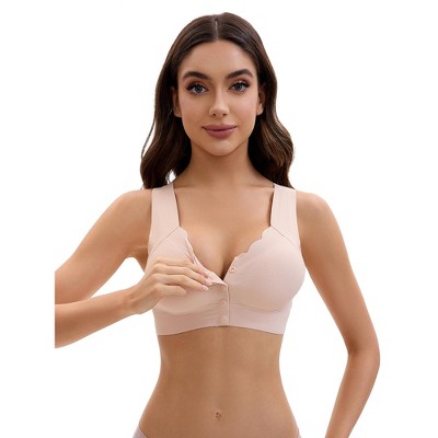INSPIRE CHIC Women's Front Closure Adjustable Strap Wirefree Full Coverage Soft Workout Bras 2 Packs
