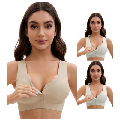 INSPIRE CHIC Women's Front Closure Full Coverage Bra Wirefree Wave Trim U Back Soft Bras 2 Packs 2 Light Beige 3X-Large