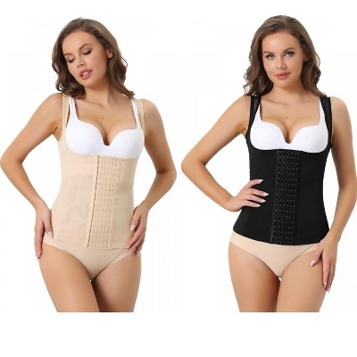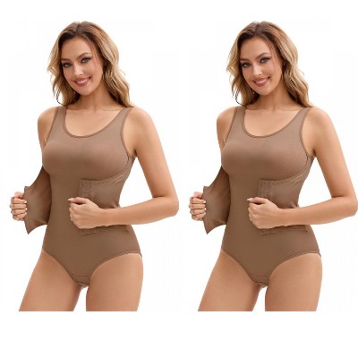 INSPIRE CHIC Women's Front Zipper Tummy Control Full Bodyshaper Adjustable Straps Open Bust Lace Trim Jumpsuit 2 Packs