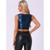 The shiny metallic crop top can be added to your party collection. It is suitable for parties, clubs, cocktails, nights out, and gatherings! The fashionable style highlights your torso well and shows your shoulders at the same time. The perfect eye-catching sleeveless crop top with metallic shining, allows you to shine on the night of the party. You can pair it with hot pants, a leather jacket, or a skirt for a charming look.