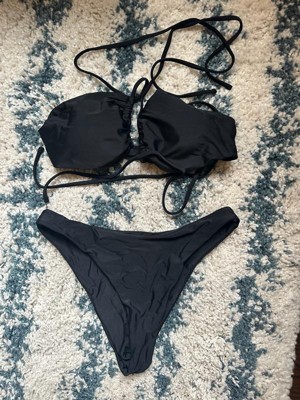 [This review was collected as part of a promotion.] This bathing suit is high quality material and fits well, the bottoms aren’t high waisted but they also aren’t low cut or a thong, which I appreciate. The top is definitely tricky to figure out - my biggest complaint though is the waist strings aren’t long enough to actually wrap around your waist and they’re not thick enough to actually look good as a piece under the cups. I wish you could just tie this bathing suit normally because it kind of looks weird.