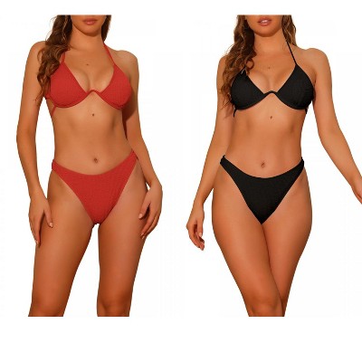 INSPIRE CHIC Women's Halter Underwire Adjustable Spaghetti Straps Triangle Bottoms Swimwear Bathing Bikini Suits 2 Sets - 1 of 4