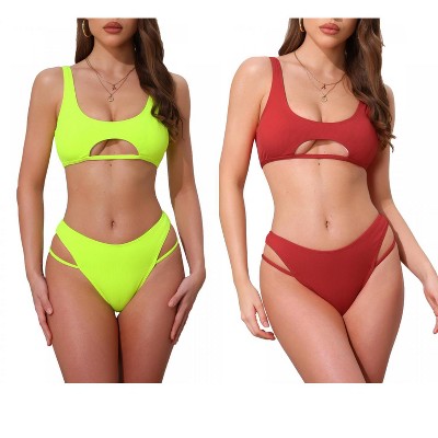 INSPIRE CHIC Women's Halter Underwire Adjustable Spaghetti Straps Triangle Bottoms Swimwear Bathing Bikini Suits 2 Sets - 1 of 4