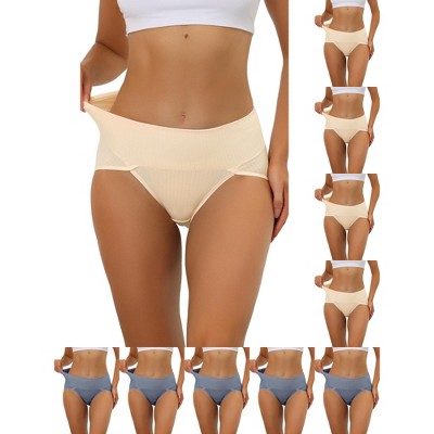 INSPIRE CHIC Women's Hi-Cut Ribbed High Waist Tummy Control Available Briefs 9 Packs 5 Blue 4 Beige Large