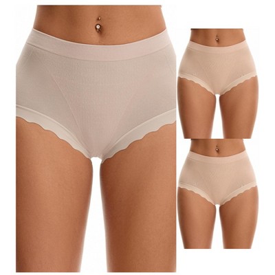 INSPIRE CHIC Women's Hi-Cut Satin High Waisted Lace Trimmed Tummy Control Underpants Briefs 3 Packs 3 Beige Large