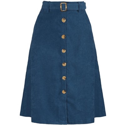 INSPIRE CHIC Women's High Waist Elastic Back A-Line Belted Corduroy Midi Skirt with Pockets Medium Peacock Blue
